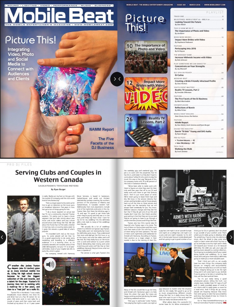 Saskatoon DJ Anchor of Armed With Harmony featured in Mobile Beat Magazine The Worlds Biggest Mobile & Club DJ Mag