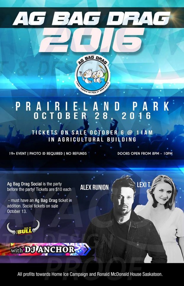We Are Proud To Support Ag Bag Drag 2016 w/ Alex Runions Lexi T & Dj Anchor Armed With Harmony Friday Oct 28th Prairieland Park Event Here> https://www.facebook.com/events/1087049841414000/