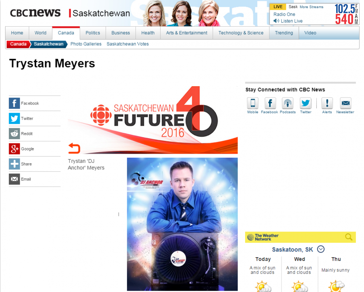 CBC Future 40 Saskatoon Saskatchewan - Dj Anchor Armed With Harmony